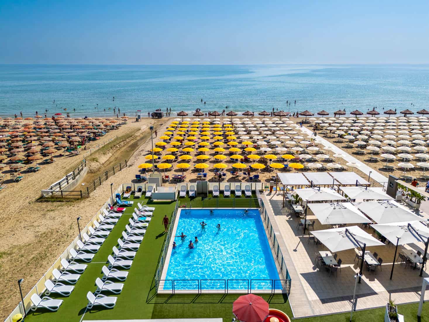 Hotel Venezia is in a beautiful location in the centre of Tortoreto Lido and near the private beach -with swimming pool, small restaurant, games area and entertainment for children – where a beach umbrella, a sun lounger and a deckchair is assigned to each room. The beach establishment is very well-kept and quiet, like the hotel, and both are family-run. The owners’ hospitality is always appreciated by all guests.