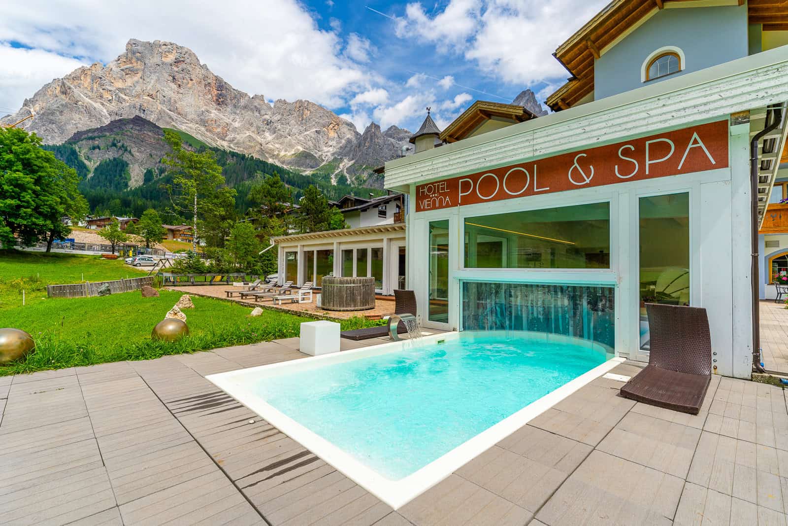 L'Hôtel Vienna de Primiero San Martino di Castrozza est entouré par le vaste panorama des Dolomites. Pour vos vacances All Inclusive dans le Trentin Haut Adige, vous bénéficierez des meilleurs services, toujours tout inclus. Par exemple, l’accès au spa panoramique, ouvert de 14h à 20h et réservé aux adultes à partir de 17h, où vous pourrez vous détendre après une journée sur les pistes ou de randonnée en montagne. Vous y trouverez un maxi sauna, un sauna bio, un bain turc aux essences de montagne, des douches émotionnelles, une piscine chauffée et hydro, un jacuzzi d’eau chaude extérieur.