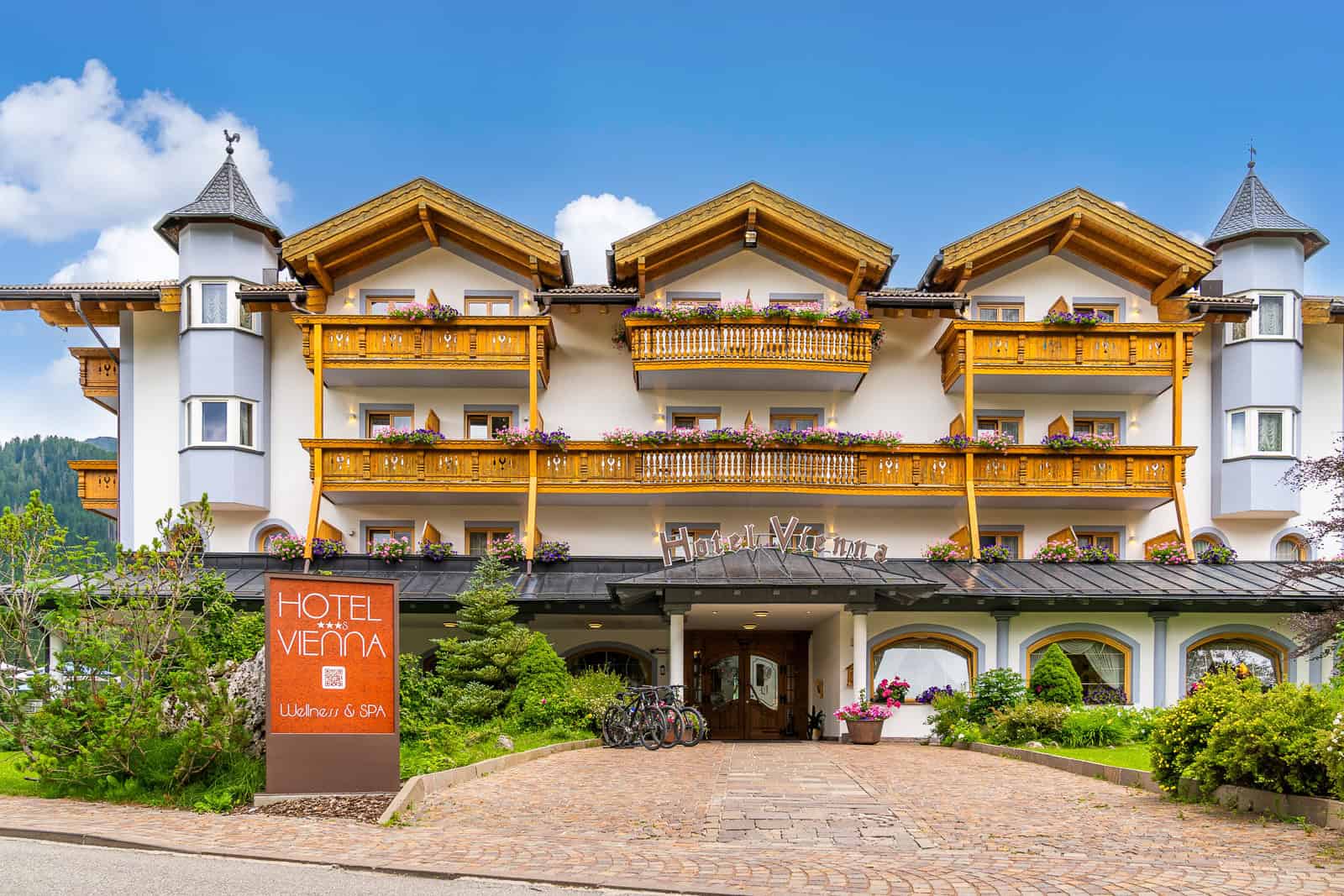 Toutes les chambres de l'Hôtel Vienna sont meublées avec des matériaux naturels et hypoallergéniques. Elles disposent d’un balcon panoramique avec vue sur les Dolomites et d’un lit King Size avec surmatelas à mémoire de forme, matelas avec lattes orthopédiques et menu avec quatre types d’oreillers à mémoire de forme. La suite Family prévoit un kit enfants, avec lit bébé, siège, chauffe-biberon, table à langer, baignoire et sac à dos de randonnée pour bébé.