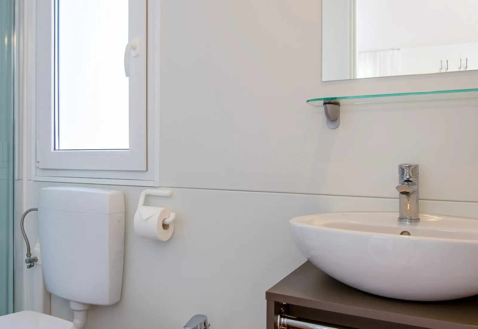 Dotazioni come climatizzazione, TV, frigorifero e utensili cucina.