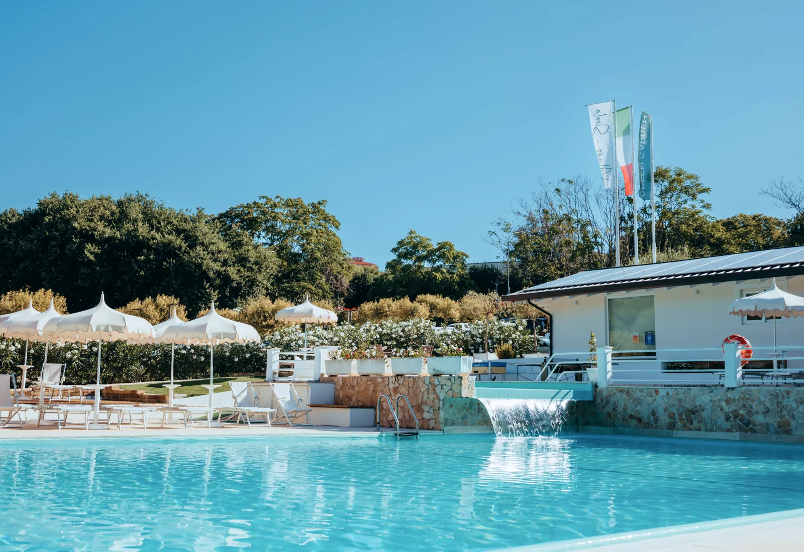 Gli ospiti trovano la comodità di avere tutto a portata di mano: la grande piscina immersa nella natura, perfetta per rinfrescarsi o giocare con i bambini, i campi sportivi, gli ampi spazi all’aria aperta e la cura del verde che regala un’atmosfera rilassante in ogni angolo del villaggio.