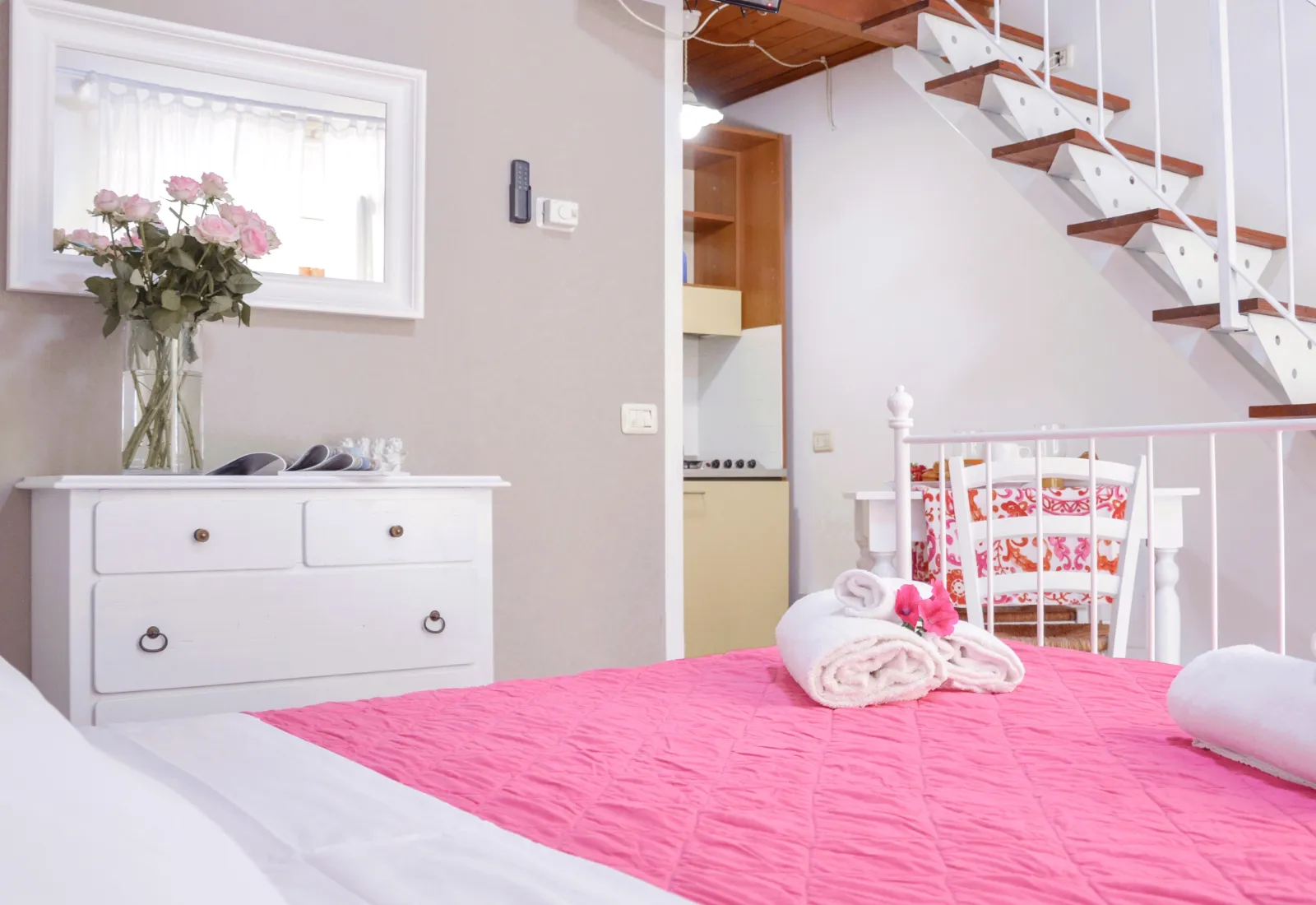 Monolocali su due livelli: al piano terra camera matrimoniale con angolo cucina e bagno con doccia, al soppalco letto singolo; veranda coperta esterna con tavolo e sedie.