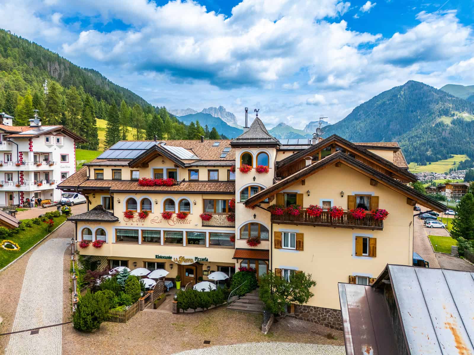 MyTime Hotels la Grotta in Val di Fassa, gode di una posizione speciale a 50 metri dal centro, ma è immerso in un tranquillo giardino privato di 5000 mq. attrezzato con tanti giochi per i bimbi. La funivia del Catinaccio e i 40km di sentieri ciclabili sono a pochi minuti di distanza, per questo l’hotel è il punto di partenza ideale per vivere esperienze memorabili con tutta la famiglia, grazie anche alle numerose attività organizzate 6 giorni a settimana. L’hotel offre un servizio di mezza pensione, ma hai la possibilità di prendere qualcosa di sfizioso dal buffet della colazione per le tue giornate di escursione, e gustare una ricchissima merenda pomeridiana al rientro.